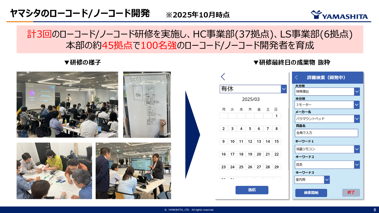 - 100名超がローコード/ノーコード開発者に育ち、70超のアプリが現場から誕生。年間ROI 160〜1000%級の案件も。(2025年11月時点)