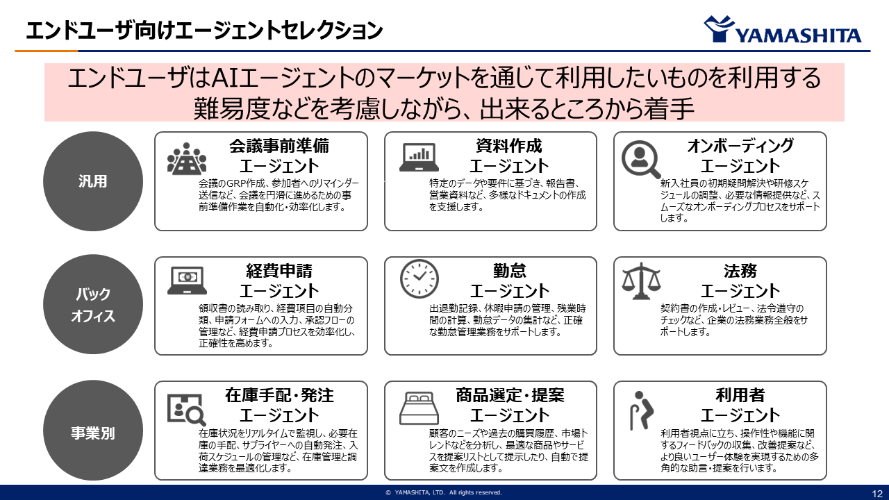 例:在庫確認 → 取引先照会 → 回答案生成 → 受発注入力を複数エージェントがオーケストレーション。“先に設計しておく”ことが選択肢を生む。