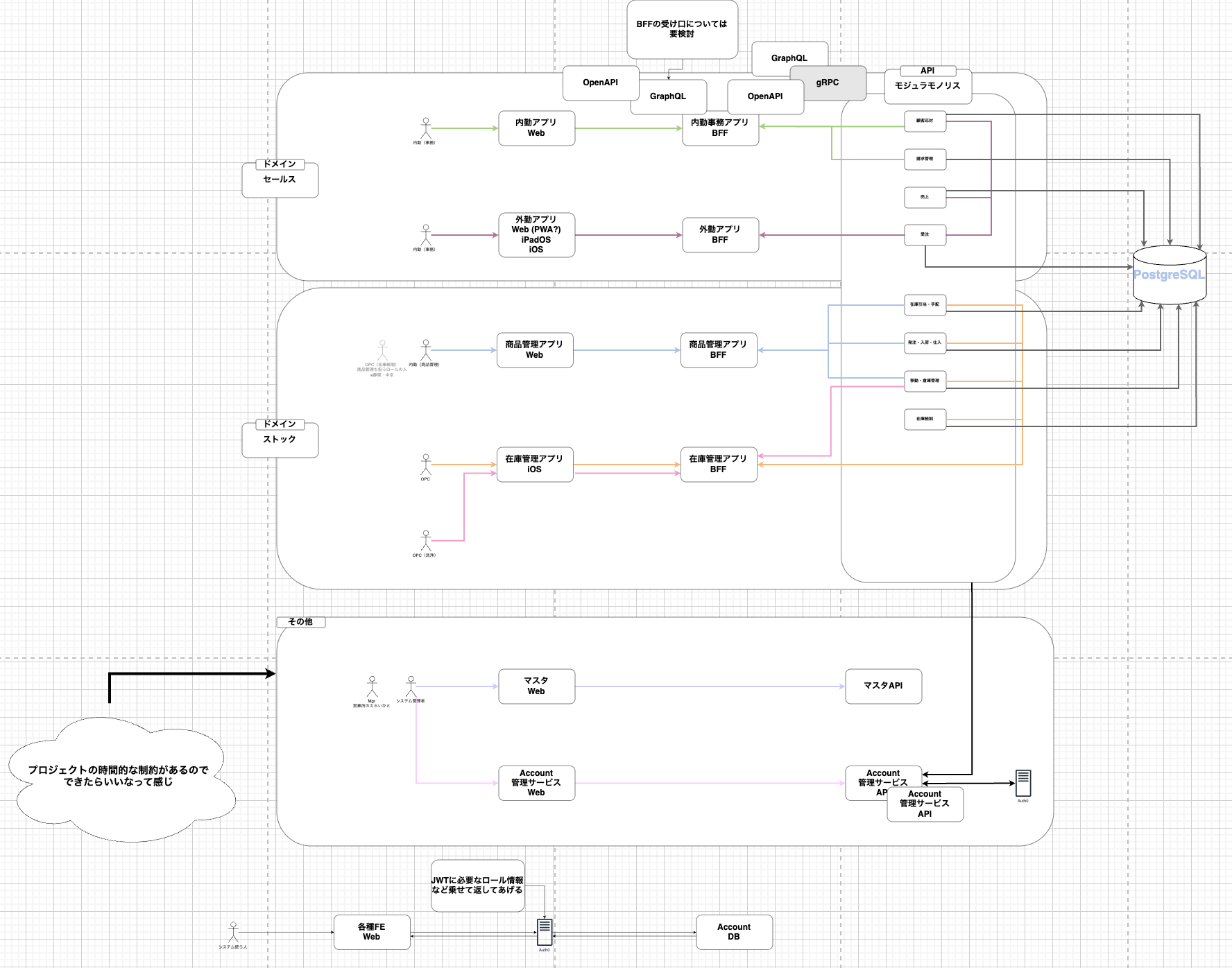 アクターごとにドメイン分割ができないか検討した図